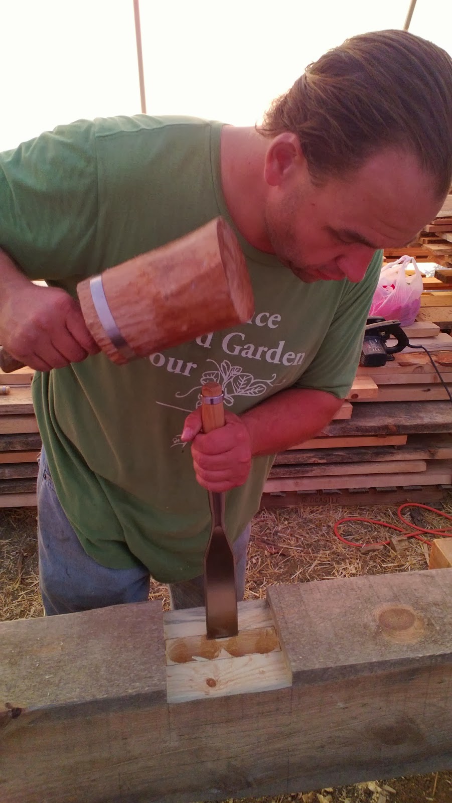 Hopefully this week the plumber will be in to do the rough-in so that the slab can be poured. Then it will be ready for the structure. That brings us to the other major activity going on right now - joinery! We got started last week and since then we have been working on the posts for the cabin. They are the most complicated pieces and require the most time to complete, but they are also the main structural members. There are a total of 79 pieces in the cabin to join. We are nearing completion of the first post (of 6) and have a good start on a second one. Here are some visuals to go with the descriptions: